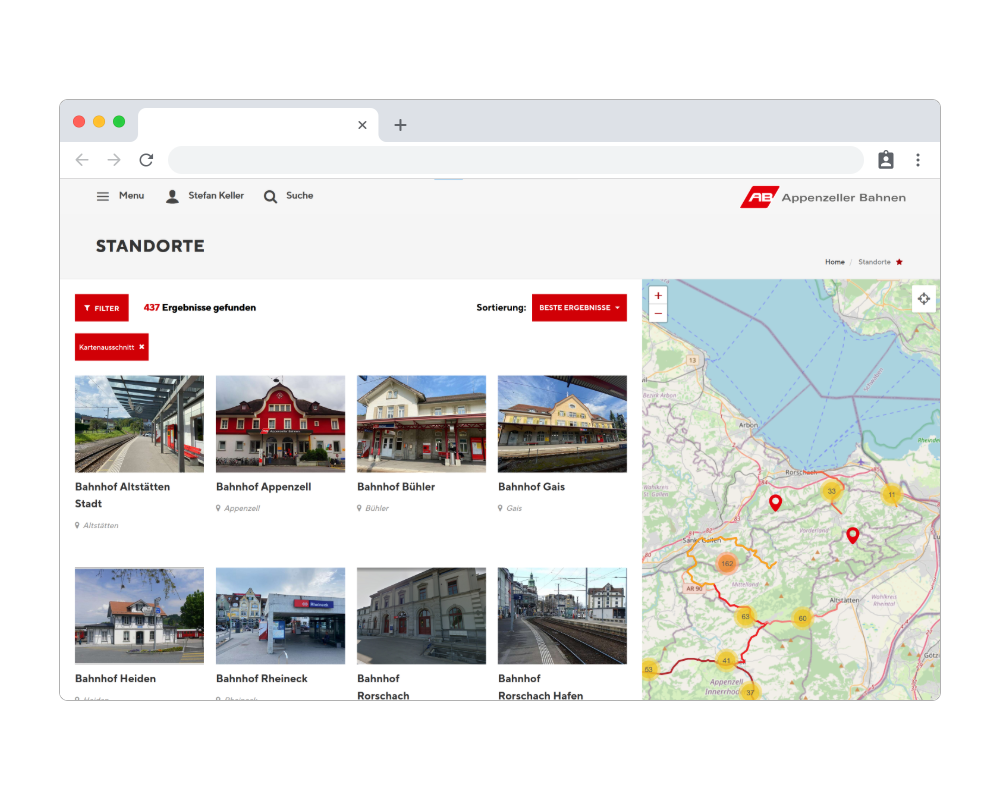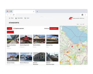 Dank der integrierten PIM-Lösung können sämtliche Informationen zu den Standorten (Bahnhöfe, Bahnübergänge, Parkplätze usw.) übersichtlich zur Verfügung gestellt und an einer zentralen Stelle gepflegt werden.