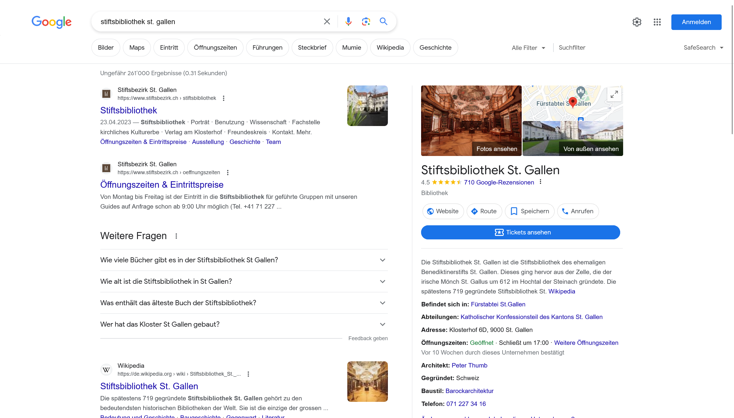 Ergebnisse in der Google Search